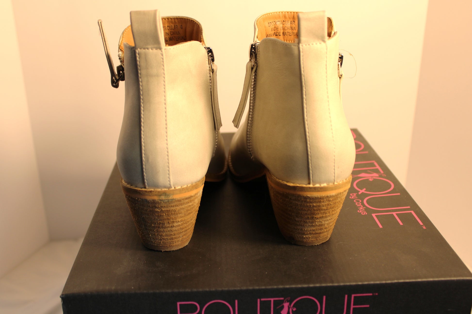 Pictures look gray but the boots are an ivory color.